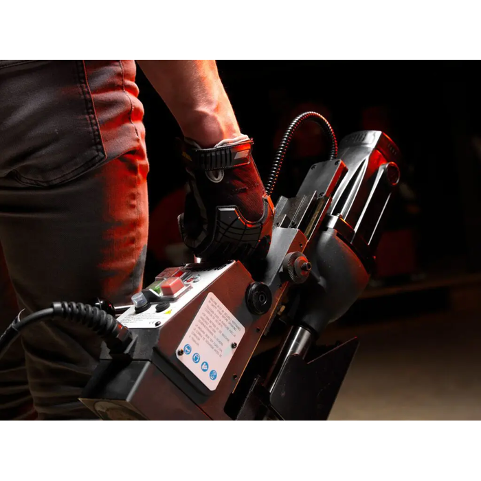 - Powerful Magnetic Adhesion: Equipped with a high-power electromagnet that ensures superior grip and stability on ferrous metals, enabling safe and precise drilling in various orientations.