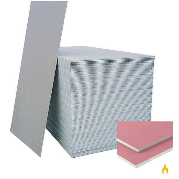 - Pink/Red Paper Facing: The board is typically coated with a distinctive pink or red paper on both sides, serving as a clear visual identifier for fire-resistant plasterboard, ensuring correct product selection on site. The surface is ready for various decorative finishes (e.g., paint, wallpaper, or plaster skim) after proper preparation.