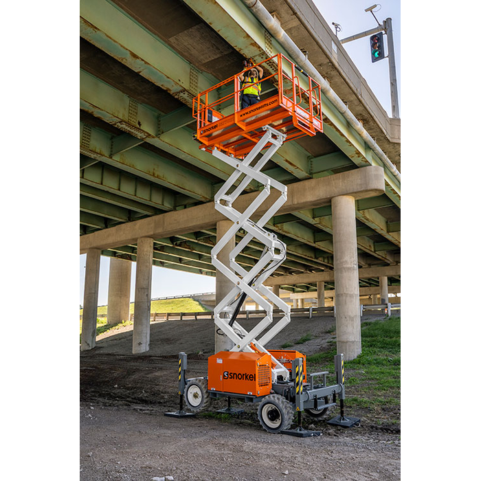 Snorkel S3370RTE – 12.0m Electric Rough Terrain Scissor Lift: Silent Power for Demanding Sites