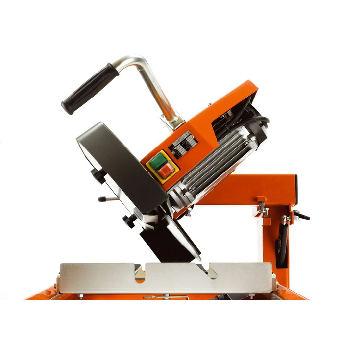 - The cutting head can be tilted up to 45° for precise mitre cuts, adding significant versatility for various architectural and structural applications.