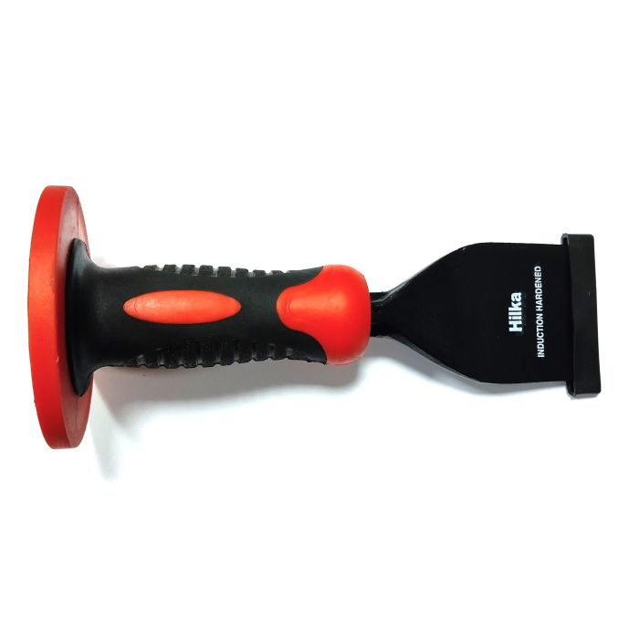 Designed for heavy-duty tasks such as cutting and shaping brick, stone, and concrete. It features a drop-forged steel blade with a protective hand guard, ensuring durability and safety during use.