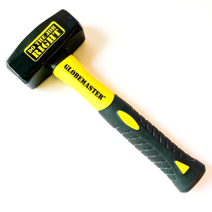 Globemaster 2.2lb Club Hammer is designed for heavy-duty tasks such as demolition, driving chisels, and breaking masonry. It features a fibreglass handle with a non-slip rubber grip, providing durability and comfort during use.