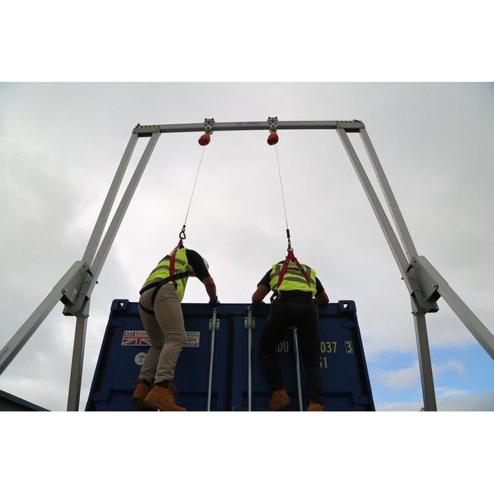 The Reid Lifting 2000kg PortaGantry, configured with its "Super Tall" A-frame and a 4570mm beam, delivers outstanding lifting capabilities for projects requiring both high reach and a wide span. This lightweight, manually assembled aluminium gantry system provides a safe and efficient solution for handling heavy loads and offers reliable fall protection, even in demanding environments.