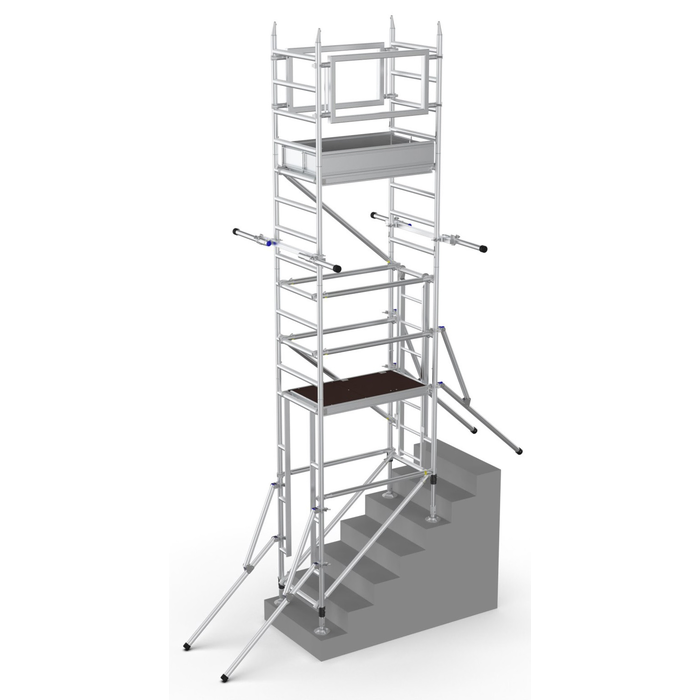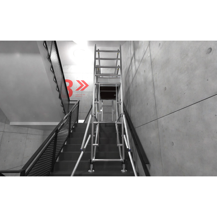 • Comes with ground-level stabilisers as standard, which can be angled and positioned to suit varying staircase configurations. Stub stabilisers are available for bracing off adjacent walls in taller or more complex setups.