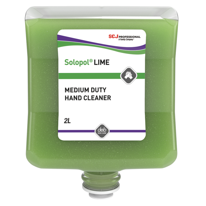 Deb Solopol Lime is a medium to heavy-duty hand cleaner designed for industrial environments. It effectively removes ingrained industrial soilings such as oil, grease, and general dirt and grime. Formulated with a natural cornmeal scrubbing agent, it provides a deep clean without damaging the skin or harming the environment. The addition of glycerine and wheat germ oil helps to moisturize and condition the skin, leaving it feeling soft and supple after use. Its refreshing lime fragrance makes the product pleasant to use.