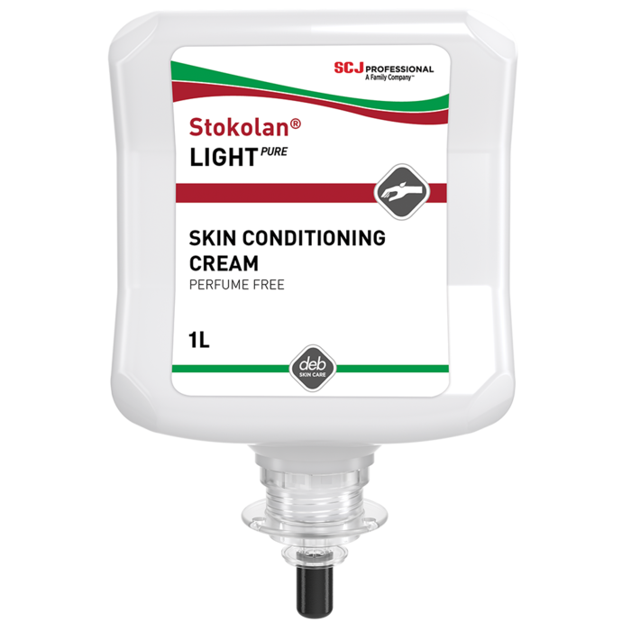 Stokolan® Light PURE is a mild, non-greasy skin conditioning cream designed to maintain healthy skin and prevent dryness. Ideal for use in industrial, food handling, healthcare, office, and commercial environments, this 1L cartridge is compatible with SC Johnson Professional dispensers.