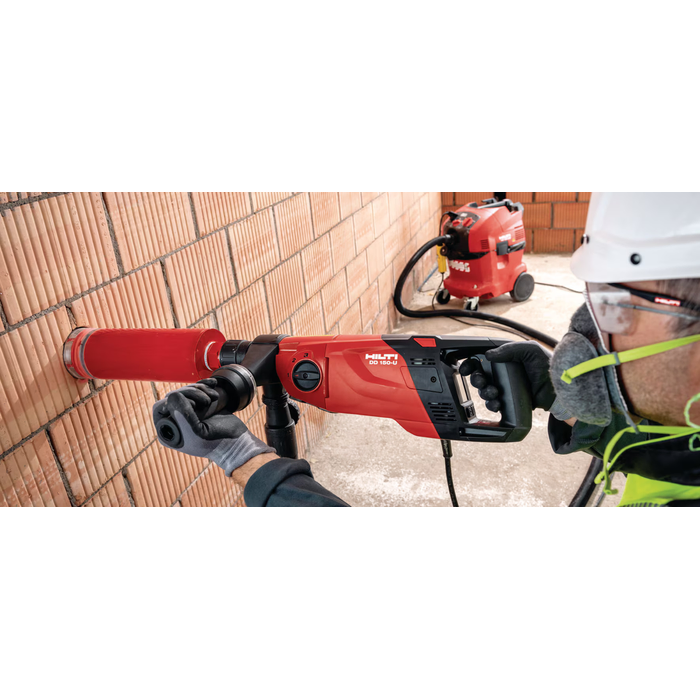 - Rig-Based Drilling: When mounted on a compatible Hilti drill stand (e.g., DD-ST 150 U), it offers enhanced stability and precision for larger diameters, deeper holes, and working with reinforced concrete.