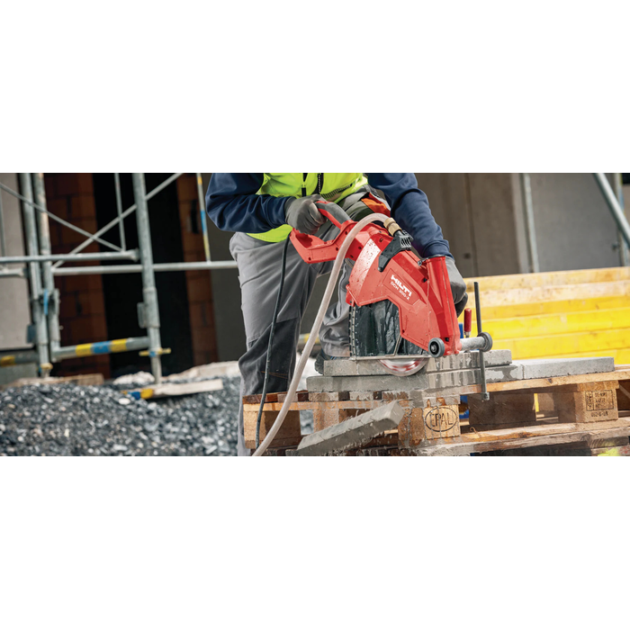 The Hilti DCH 300 Diamond Cutter is a professional-grade electric handheld cutting tool engineered for high-performance and precise cuts in the toughest construction materials. With its robust motor, optimized ergonomics, and advanced features, it delivers exceptional productivity and safety, whether you're working on reinforced concrete, granite, brick, or steel. Its capability for both wet and dry cutting, coupled with superior dust management, makes it an indispensable asset on any modern job site.