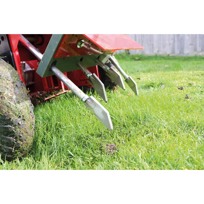 - Aeration Depth: Up to 75 mm (3 inches), adjustable to suit different soil conditions and aeration needs. The tines punch at approximately 7.5-10cm (3-4 inches) intervals depending on machine speed.