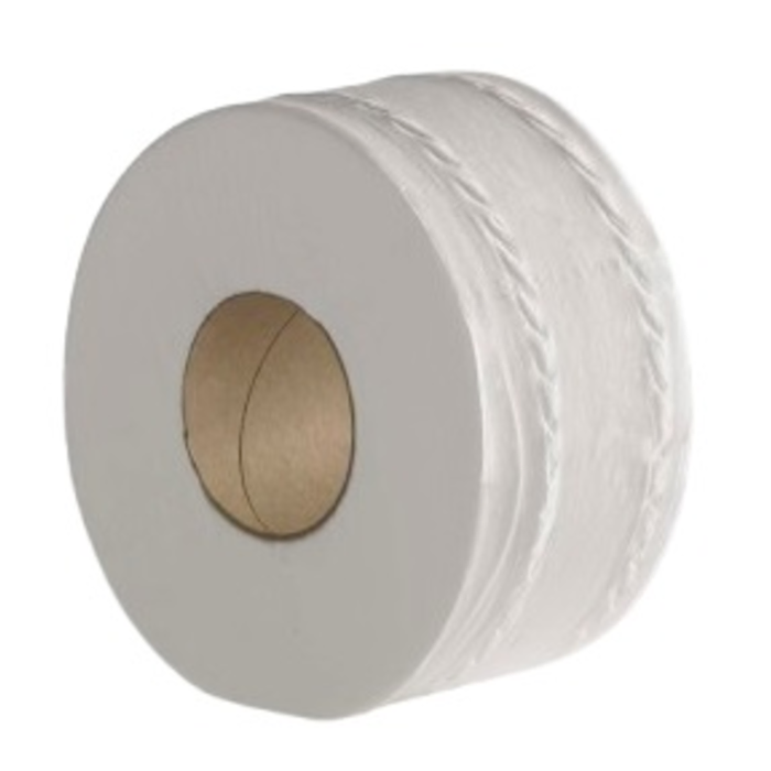 Mini Jumbo Toilet Roll 120m 60mm Core Recycled. Pack of 12.