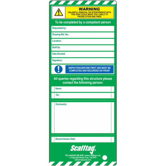 SCAFFOLD TAG INSERT CARD